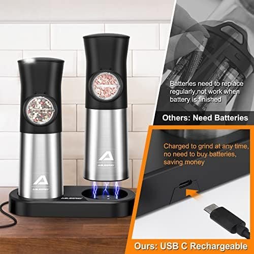 ABLEGRID Gravity Electric Salt and Pepper Grinder Set,Rechargeable Automatic