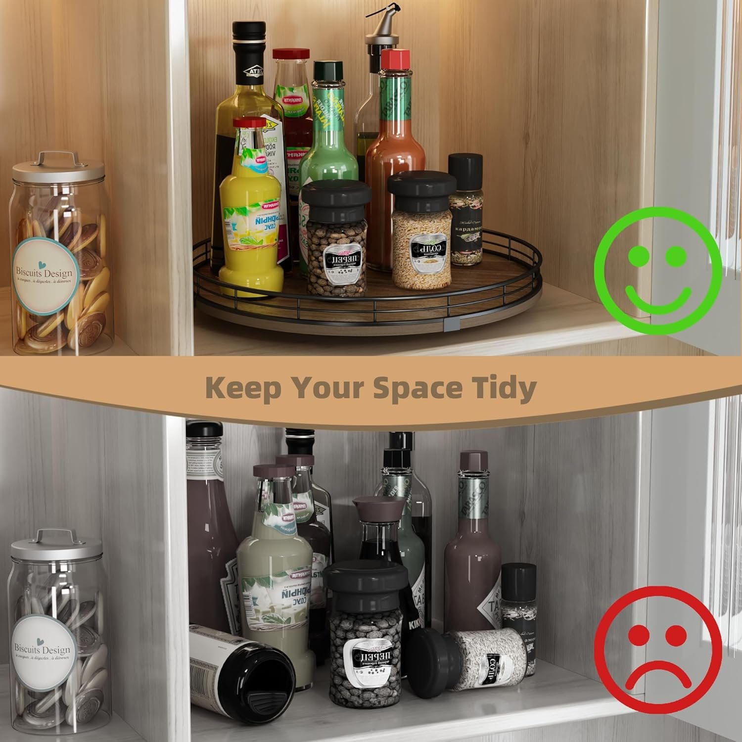 360°Smooth Rotation – The lazy susan turntable rotates smoothly and silently, placed next to the stove for easy access to condiments, spices, olive oil and cooking supplies. Placed next to the sink to display soap lotion. Thoughtful kitchen countertop organizers to rid your life of clutter!