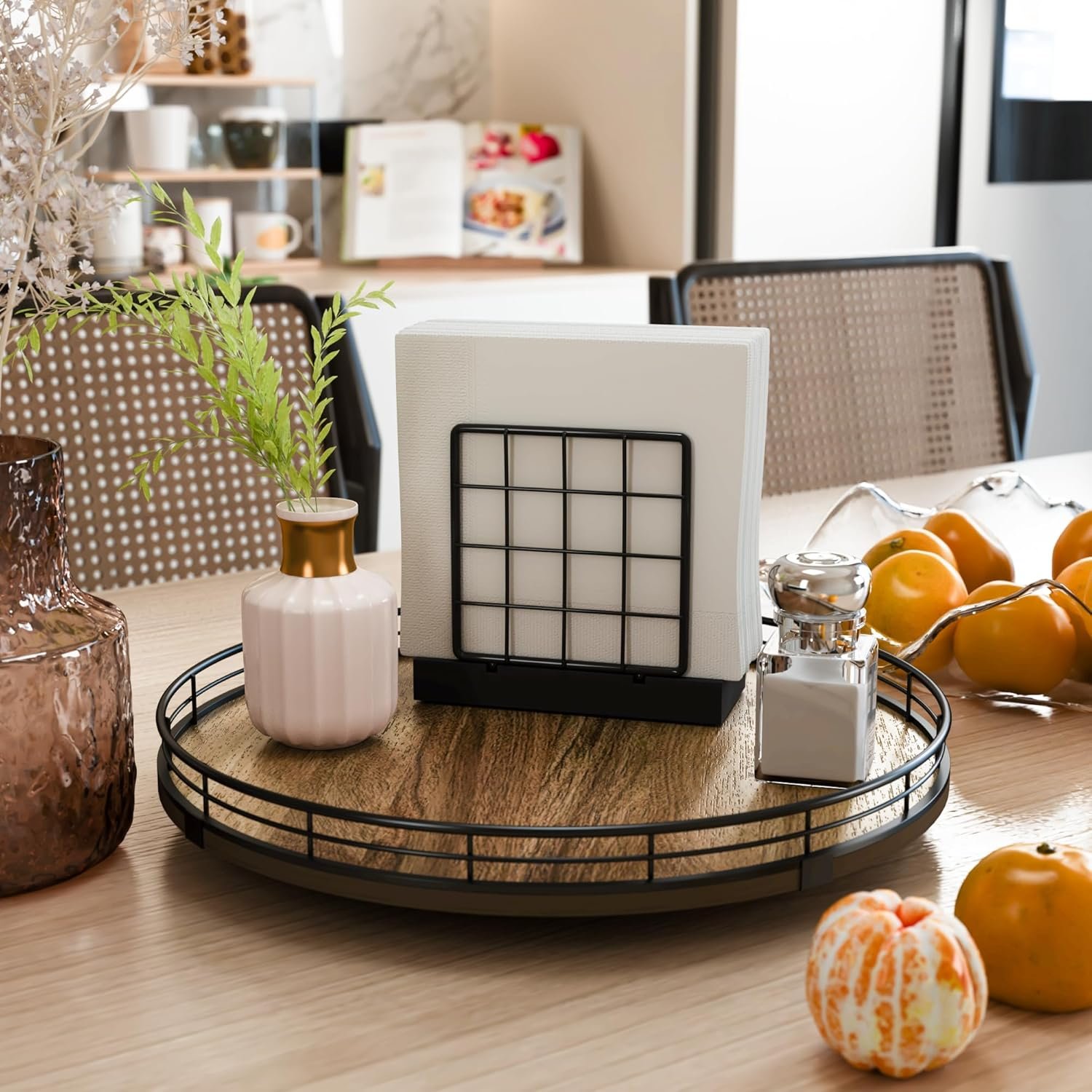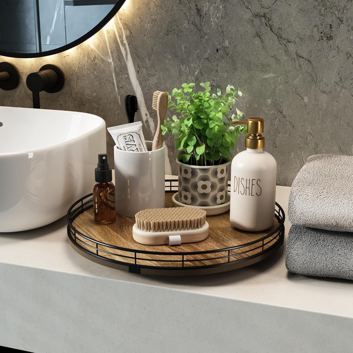 Exquisite Texture- A turntable to meet your many home needs. Place it in your cabinet to easily store and access food, condiments, cans, medicines and more. As a coffee table tray, perfect for displaying napkin holders, vases, candles. Use it as a bathroom vanity tray to store lotions, perfumes, cosmetics, keep your life organized!