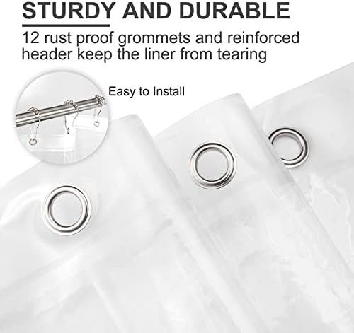Easy installation – Each long shower curtain liner provides 12 rust resistant metal grommet holes which fit most shower curtain liners hooks, easily change the shower hooks and and throw away the old ones. The durable metal grommet holes promote easier hanging and long-lasting use.
