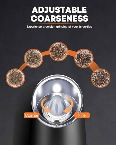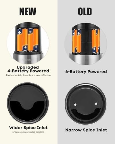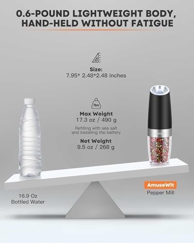 CONVENIENT ONE-HANDED OPERATION – The gravity pepper grinder is gravity activated. Just simply turn upside down and get fresh ground salt or pepper till your heart is content. No buttons or twisting! The white LED light will turn on automatically when the grinder is in operation. *Each Mill requires 6xAAA batteries (not included). Peppercorns or salt not included.