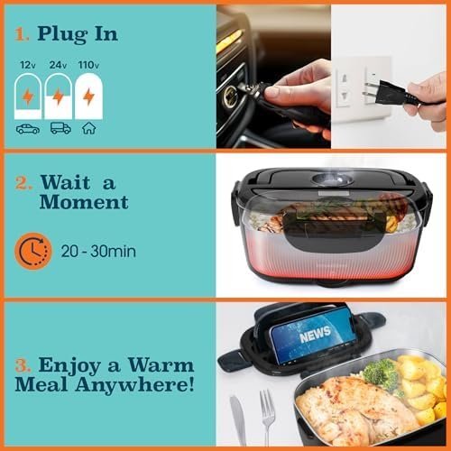 VERSATILE 3-IN-1 PORTABLE WARMER – Our heating lunch box for men and women adapts to your needs with voltage settings (110V, 12V, 24V), our portable food warmer suits cars, trucks, or office desks. Savor homemade meals effortlessly.