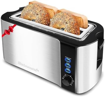 Elite Gourmet ECT-3100 Long Slot 4 Slice Toaster, Reheat, 6 Toast Settings