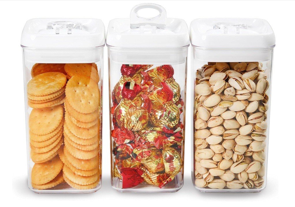 This set includes three 4-inch Regular-L sized containers, each with a capacity of 1.3 quart (1.2 liter). Designed specifically for small pantry spaces in RVs, apartments, condos, and townhouses, these containers are ideal for storing everyday household staples such as candy, coffee, nuts, snacks, beans, chocolates, and raisins. They are also suitable for storing dog and cat treats. Beyond food storage, these versatile containers can be used to organize makeup, bathroom essentials, office supplies, and craft materials.