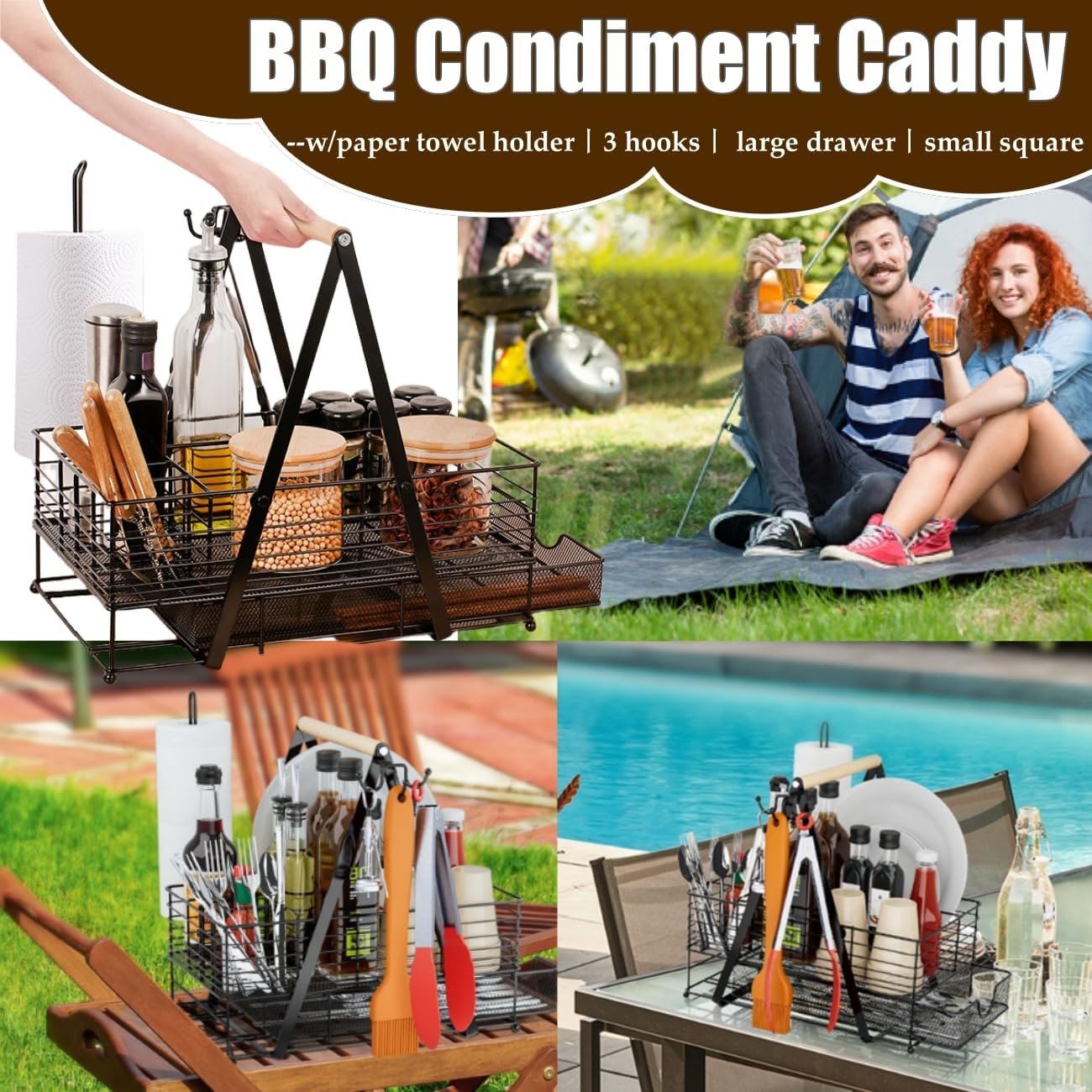 Ideal Tool: Grilling caddy As an ideal accompaniment to your daily grilling and outdoor camping, you can collect all your grilling accessories, picnic tools and camping supplies with this grill caddy and take them wherever you want to go. It is also the perfect toolbox for outdoor kitchens and RVs, and a great gift for your chef friends and family.