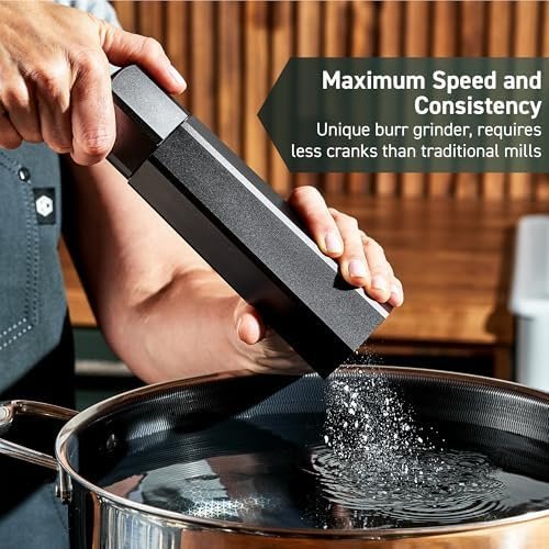 LIGHTNING-FAST PRODUCTION: The HexClad Salt Mill Grinder outperforms other top-rated salt mills, producing salt faster than ever before thanks to its unique burr grinder design that offers superior consistency and speed compared to traditional blade grinders.