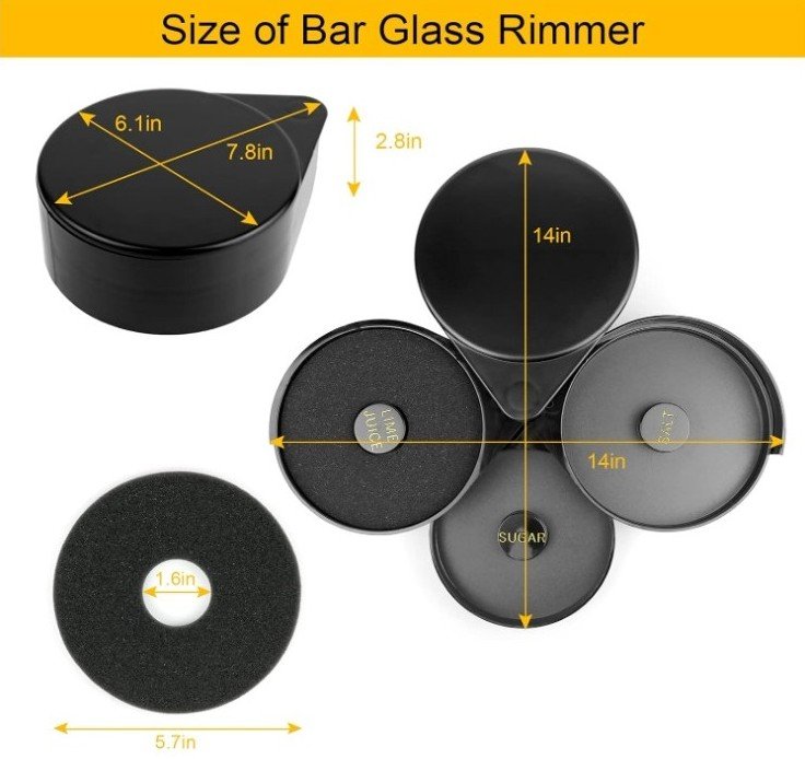 The sleek black finish complements any bar or table décor, making this glass rimmer suitable for parties, weddings, birthday celebrations, festivals, dinners, and home or professional bar use.