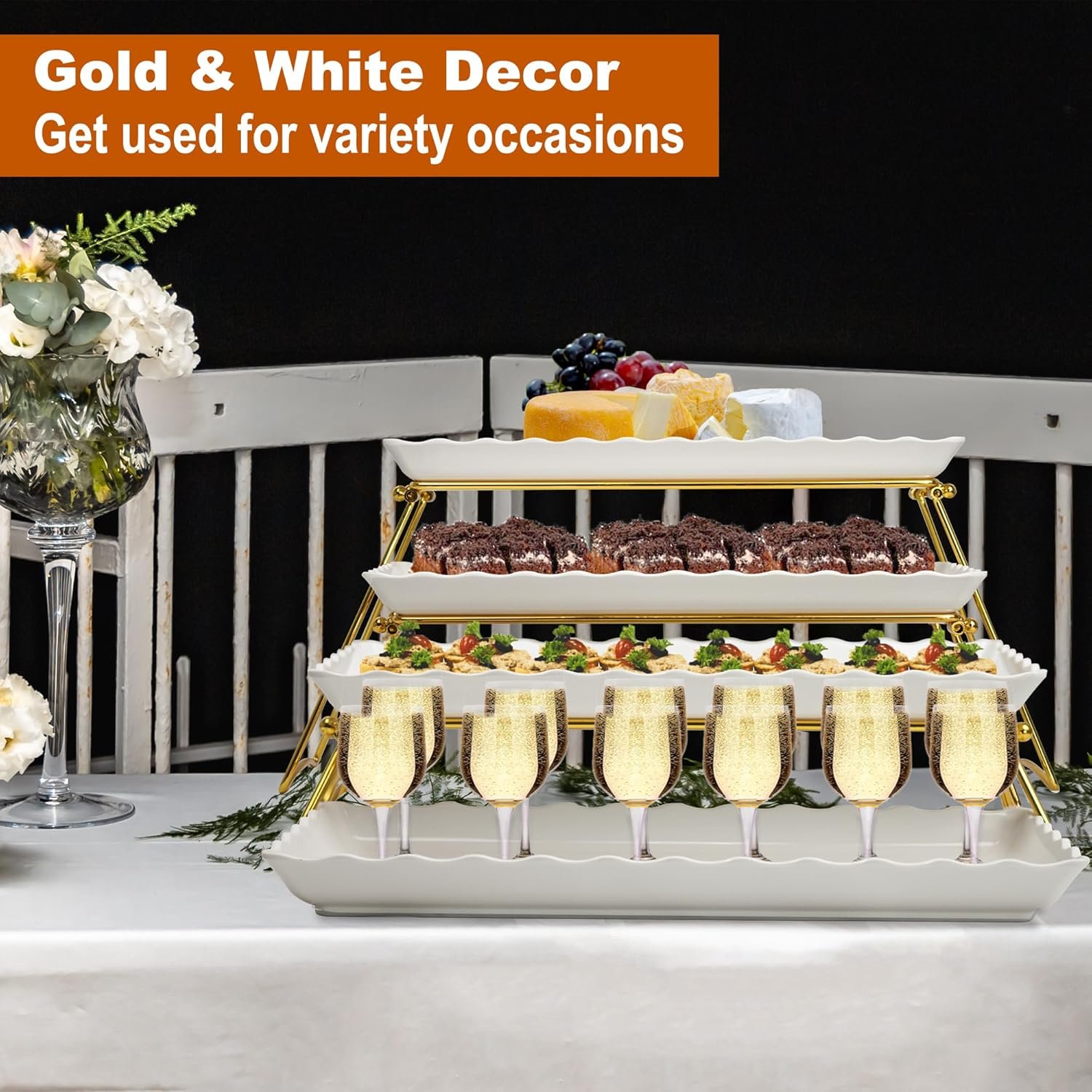 VERSATILE TIERED SERVING STAND GETS USED FOR ANY OCCASIONS: The food stand adds height to your tablescape, makes the food appear more appealing. Enhanced any special event with this elegant serving platter set for party. It’s perfect for birthdays, weddings, Bridal Shower, anniversary, holidays, hospitality business, kids and adult parties, formal gatherings, dances balls, buffets, dessert bar, retirement party and more entertaining. There is no limit but your imagination on how to use these trays and stands, either together or apart