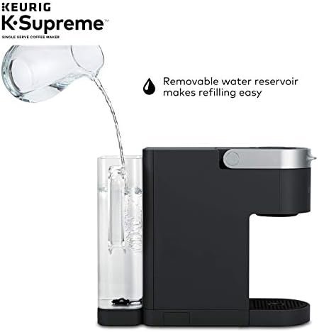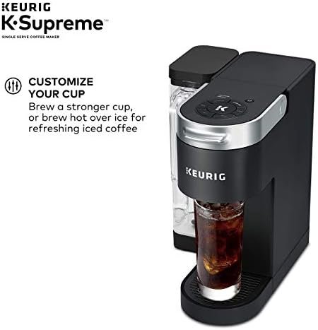 Elevate your everyday coffee experience to delicious new heights with the Keurig K-Supreme Single Serve coffee maker in Black. The K-Supreme coffee maker is the first series of Keurig brewer to feature MultiStream Technology, an innovative new way to more evenly saturate the coffee grounds* in every K-Cup pod. This technique extracts full flavor and aroma from your K-Cup pod, so you can enjoy an exceptionally flavorful experience every time you brew. Looking to customize your perfect cup? Use the Strong button for a stronger, more intense coffee taste or brew hot over ice for a refreshingly delicious iced coffee. No matter what you prefer, you can enjoy 6, 8, 10, or 12 oz. of your favorite coffee, tea, cocoa, and more – all freshly brewed in minutes. The K-Supreme coffee maker is travel mug-friendly, and the stylish 66 oz. dual-position reservoir makes it easy to refill and easy to find the perfect spot on your countertop. Choose from hundreds of delicious varieties of K-Cup pods or brew your own ground coffee with the My K-Cup Universal Reusable Coffee Filter (sold separately). *vs. Keurig leading K-Classic brewer