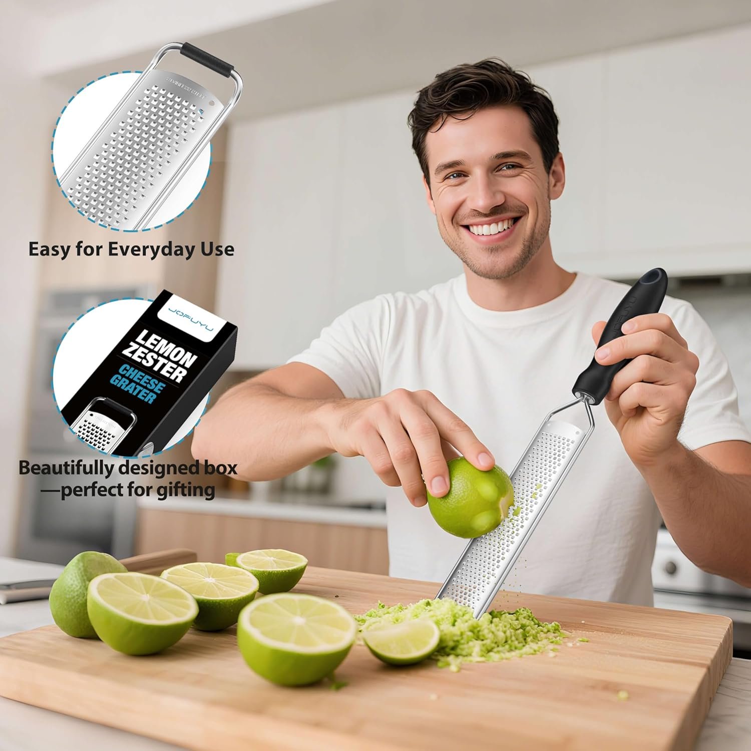 Easy to Clean & Store – Rinse under running water or use the included cleaning brush. The safety cover protects the stainless steel zester grater blade during storage. Dishwasher-safe for everyday convenience.
