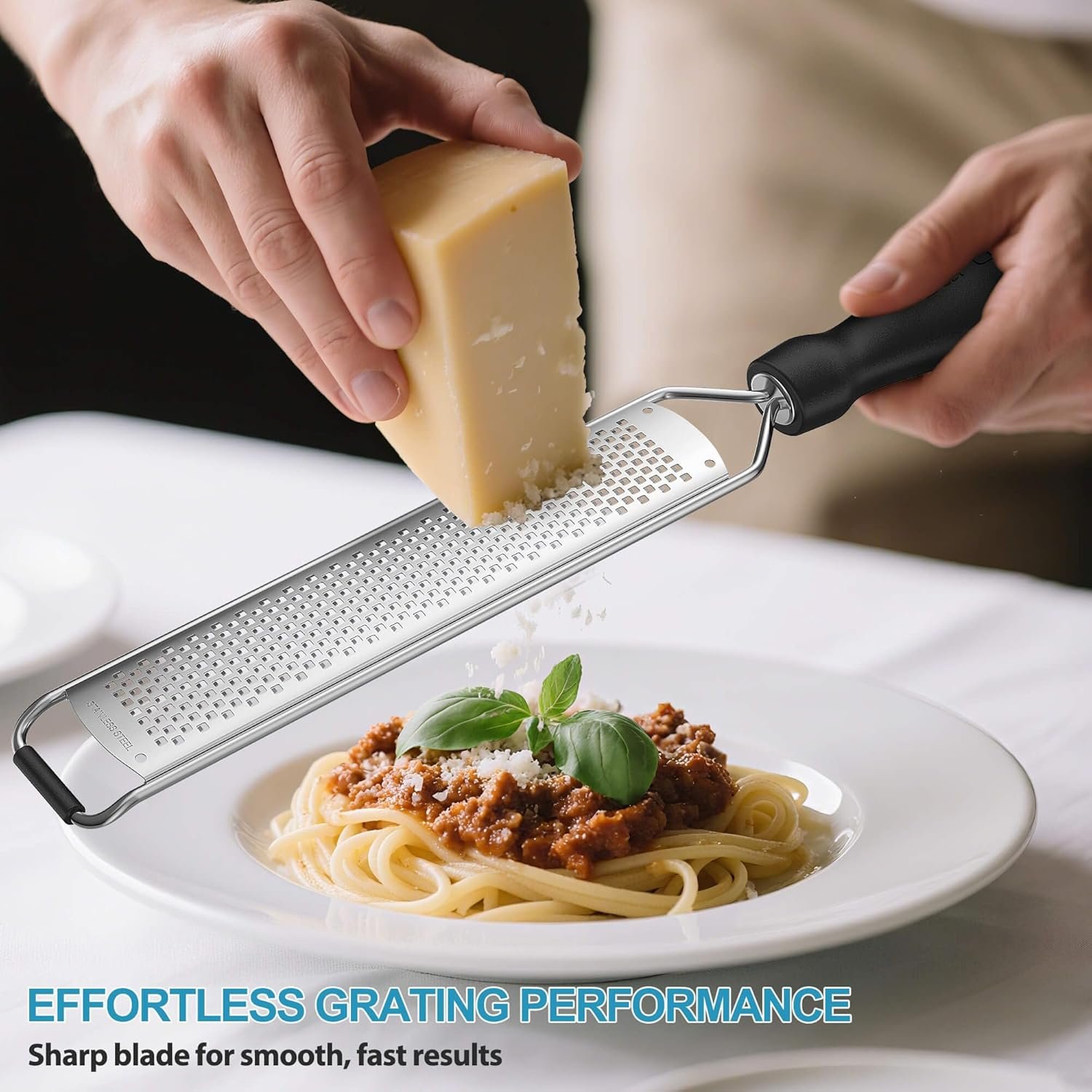 Ultra-Sharp Stainless Steel – Made from premium 18/8 stainless steel, this lemon zester & cheese grater features ultra-sharp blades for smooth zesting and fine grating. Perfect for citrus, garlic, ginger, nutmeg, chocolate, and parmesan.