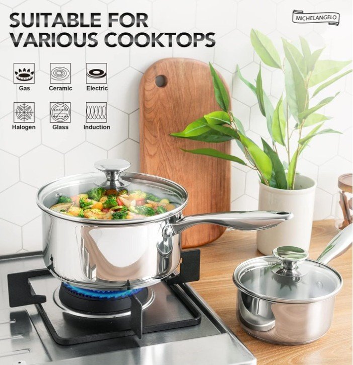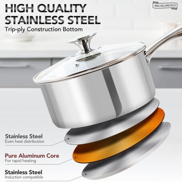 MICHELANGELO Thick Bottom Stainless Steel Saucepan with Cover
