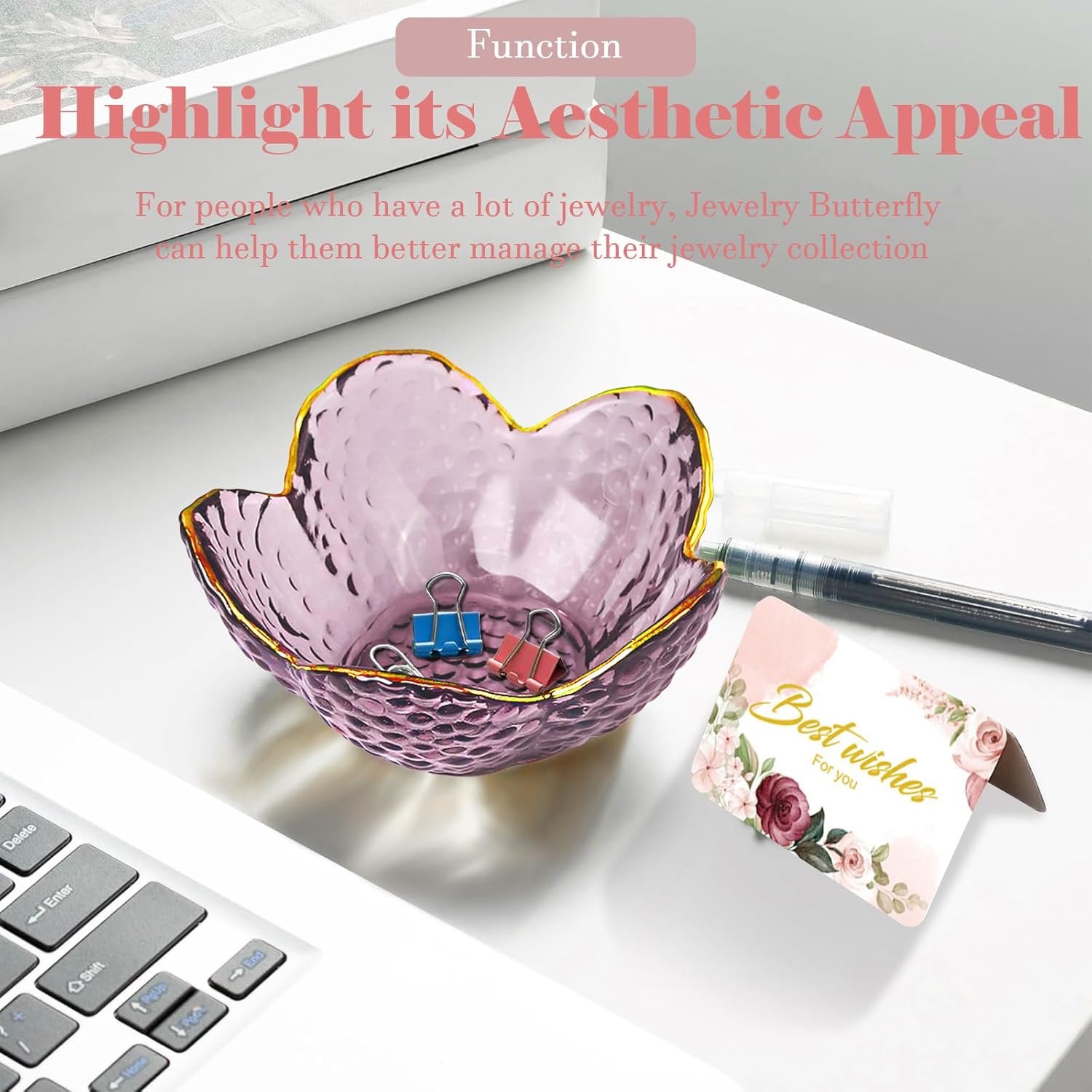 Room Decor Aesthetic Trinket Dish: This small folwer ring dish holder features a beautiful flower design to neatly organize your rings, earrings, necklaces, keys and other jewelry in style on a dresser, desk, bedside, nightstand, sink or vanity countertop. Small ring tray has a cute flower shape designed with gilded edges, crystal ring holder adds a touch of aesthetics to the room decoration.