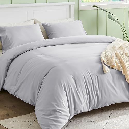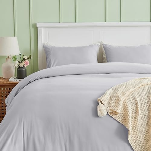 SASTTIE Duvet Cover Queen, Light Grey Queen Size Duvet Cover Set, Soft Duvet