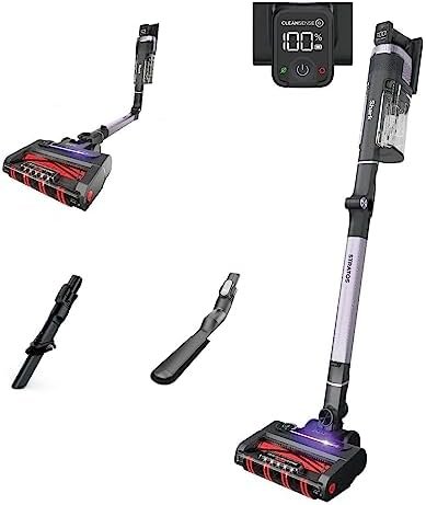 CLEAN SENSE IQ: Infrared sensor detects the dirt you can’t see and automatically increases power, giving you up to 50% better* dirt pickup. The Clean Sense IQ indicator visually shows when floors are clean. (vs. Shark Stratos Cordless in ECO Mode.)