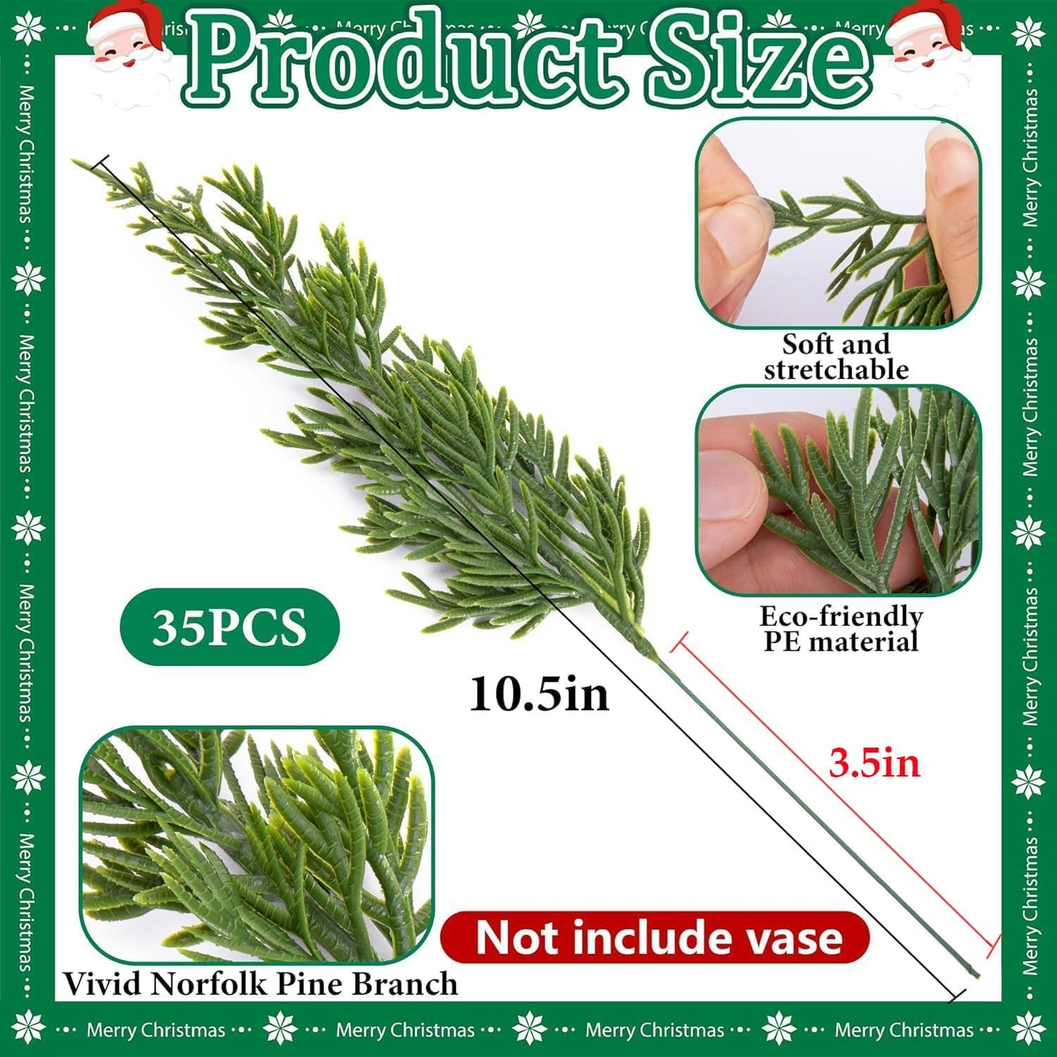 Package Includes: You will receive 35 pcs Xmas greenery pine branches measuring 10.5 inch, and 10 pcs artificial red berries stems measuring 7 inch, which is easy to insert in the vase (Not include vase), perfect for a variety of holiday wreath garden home decor. Warm tips: To ensure it meets your expectations, please carefully check the product size pictures and measure the depth of your vase before purchasing.
